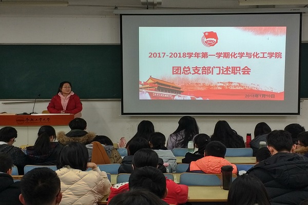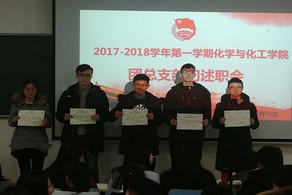 為總結(jié)學(xué)院團(tuán)總支、網(wǎng)絡(luò)文化工作室一學(xué)期以來(lái)的工作情況,樹立先進(jìn)榜樣,做好規(guī)劃,充分發(fā)揮先進(jìn)個(gè)人的模范帶頭作用,化學(xué)與化工學(xué)院團(tuán)總支、網(wǎng)絡(luò)文化工作室于2018年1月10日晚七點(diǎn),在翡翠湖校區(qū)11教202舉辦了年終述職答辯會(huì)暨優(yōu)秀干事頒獎(jiǎng)儀式。兩大組織的團(tuán)學(xué)干部及全體干事參加本次活動(dòng)。
