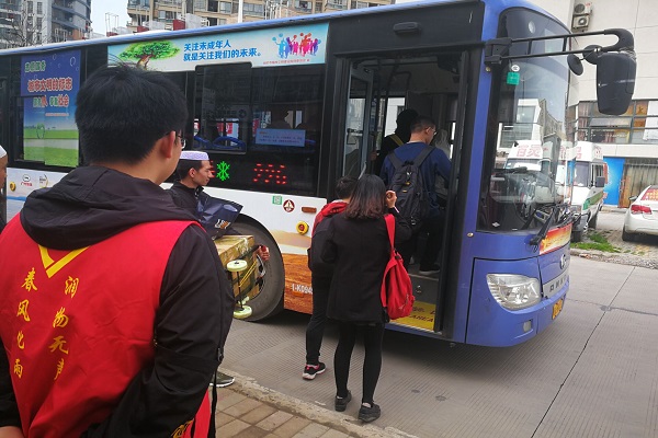 活動中,第一批志愿者在226路公交和606路公交大學(xué)城站引導(dǎo)乘客有序上車、文明出行的同時,積極幫助攜帶物品較多的乘客安全乘車。持續(xù)近兩小時的愛心志愿,同學(xué)們獲得了乘客和公交乘務(wù)人員的接連稱贊,展現(xiàn)了合工大化工學(xué)子良好的道德素養(yǎng)。