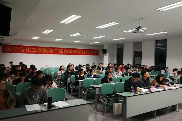 4月15日晚,化學(xué)與化工學(xué)院第二屆團(tuán)學(xué)干部技能大賽決賽在翡翠湖校區(qū)建藝館118室舉行,該院各年級(jí)團(tuán)學(xué)干部、學(xué)生會(huì)及團(tuán)總支成員、預(yù)備黨員和入黨積極分子80余人觀看比賽。