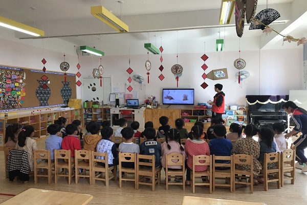 活動(dòng)當(dāng)天,同學(xué)們按時(shí)抵達(dá)禹州華僑城園,熱情和小孩子們進(jìn)行交流,并參與到他們正在進(jìn)行的游戲中,互相熟悉,拉近了彼此的距離。隨后,同學(xué)們通過(guò)組織觀看視頻《脈動(dòng)星球》開(kāi)始了環(huán)保課堂的講解,視頻播放過(guò)程中,大家對(duì)孩子們提出的問(wèn)題進(jìn)行了耐心的解答,并結(jié)合視頻內(nèi)容讓他們認(rèn)識(shí)到地球所面臨的一些問(wèn)題,提醒孩子們環(huán)保的重要性。小課堂結(jié)束后,志愿者們組織小朋友一同學(xué)習(xí)折紙大樹(shù)的制作,引導(dǎo)孩子們?cè)趯W(xué)習(xí)的過(guò)程中體會(huì)到綠色自然的美麗,小朋友們熱情響應(yīng),課堂氣氛十分活躍。