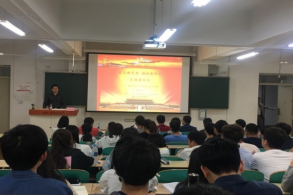 姚躍傳老師給同學(xué)們作了題為《學(xué)習(xí)新思想,擁抱新時(shí)代,實(shí)現(xiàn)新作為——兼論黨的性質(zhì)綱領(lǐng)和指導(dǎo)思想》的專題黨課。姚躍傳就“八個(gè)明確”與“十四個(gè)堅(jiān)持”闡述了習(xí)近平新時(shí)代中國特色社會(huì)主義思想的深刻內(nèi)涵,引出對(duì)新黨章的學(xué)習(xí)和解讀,他認(rèn)為作為一名入黨積極分子,首先要認(rèn)真學(xué)習(xí)《中國共產(chǎn)黨章程》,了解中國共產(chǎn)黨是一個(gè)什么樣的黨。姚躍傳強(qiáng)調(diào)了要正確認(rèn)識(shí)黨性的幾個(gè)基本問題,闡述了中國共產(chǎn)黨領(lǐng)導(dǎo)的多黨合作和政治協(xié)商制度的重要性,他明確指出中國特色社會(huì)主義最本質(zhì)的特征,中國特色社會(huì)主義制度最大的優(yōu)勢(shì)是中國共產(chǎn)黨的領(lǐng)導(dǎo)。同時(shí),姚躍傳通過講解經(jīng)典事例,深層次的剖析了我國社會(huì)主要矛盾的轉(zhuǎn)化,用“民族振興、國家富強(qiáng)、人民幸福”三個(gè)深入闡述“中國夢(mèng)”的含義。最后,他結(jié)合黨的十八大以來,我國在全面建成小康社會(huì)、全面深化改革、全面依法治國、全面從嚴(yán)治黨以及政治、經(jīng)濟(jì)、文化、社會(huì)、生態(tài)、軍事等領(lǐng)域取得的巨大成就,明確了青年的社會(huì)擔(dān)當(dāng)和歷史使命。黨課中生動(dòng)有趣的講述獲得了在場學(xué)員們的一陣陣掌聲。