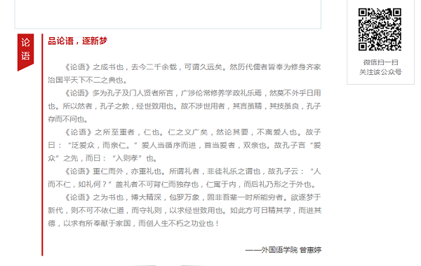 此次活動(dòng)歷時(shí)近一個(gè)月,活動(dòng)期間,各學(xué)院同學(xué)積極參加,共提交了近六十份微書評(píng)作品,內(nèi)容涉及文學(xué)、科普、史學(xué)、軍事、勵(lì)志、信仰與追求等多個(gè)方面。其中,來自外國語學(xué)院的曾惠婷同學(xué)閱讀《論語》后寫下的《品論語,逐新夢(mèng)》,運(yùn)用精妙的語言表達(dá)了對(duì)中華源遠(yuǎn)流長(zhǎng)的傳統(tǒng)文化精神的認(rèn)同與尊崇;來自化學(xué)與化工學(xué)院的李曉雅同學(xué)的《 詩乃一笑之偶然》更是激起了人們?nèi)ラ喿x《鳥道》,去感受那一首首絕美的詩篇的欲望。一份份侵染著同學(xué)們對(duì)閱讀的滿腔熱情的作品,讓廣大師生體會(huì)到了書籍的魅力,更感受到了青年的活力。