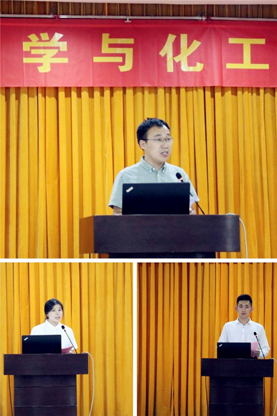 隨后,應(yīng)用化學(xué)系老師吳祥、2015級學(xué)生蔡瑤杭和2018級學(xué)生徐天和分別作為教師、老生和新生代表發(fā)言。