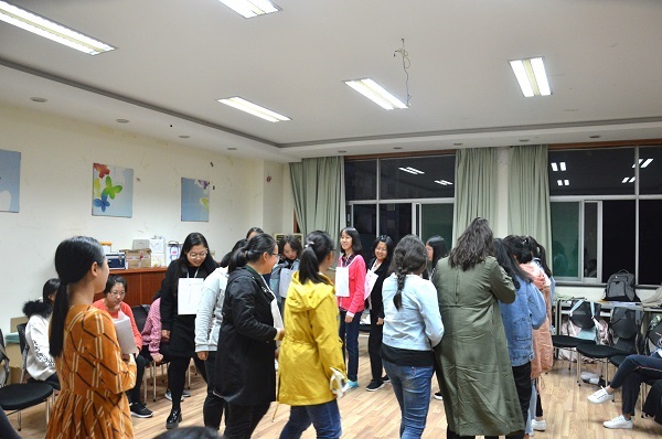 活動(dòng)初始,學(xué)院大學(xué)生發(fā)展輔導(dǎo)中心主任朱文拿老師首先對(duì)同學(xué)們的到來表示歡迎,并對(duì)本次團(tuán)體輔導(dǎo)進(jìn)行理論指導(dǎo)。活動(dòng)過程包含“鄰鄰相惜”、“心口相一”、“愛的抱抱”、“愛的支點(diǎn)”四個(gè)環(huán)節(jié),通過參與趣味心理小活動(dòng)的形式,引導(dǎo)同學(xué)們透過活動(dòng)積極思考在日常人際交往過程中遇到的問題以及對(duì)應(yīng)解決方法,教會(huì)她們?nèi)绾卧谛颅h(huán)境中展現(xiàn)自我風(fēng)采、培養(yǎng)集體意識(shí)等。在“情感驛站”分享交流環(huán)節(jié)中,大家認(rèn)真思考,寫下了入學(xué)以來和新同學(xué)、室友的相處情況及對(duì)大學(xué)人際關(guān)系的期望,分享了自己對(duì)于本次活動(dòng)的建議及體會(huì),現(xiàn)場(chǎng)氣氛歡樂、十分融洽。最后,朱老師從大學(xué)生心理健康教育的角度對(duì)本次活動(dòng)做出總結(jié),希望同學(xué)們都可以從容淡定、樂觀開朗的面對(duì)未來的一切社交場(chǎng)合,幫助同學(xué)們更深刻的體會(huì)到了此次團(tuán)體輔導(dǎo)的意義。