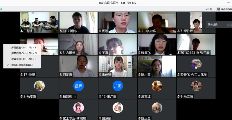 為了規(guī)范優(yōu)秀畢業(yè)設(shè)計(jì)(論文)的遴選程序,確保優(yōu)秀畢業(yè)設(shè)計(jì)(論文)的質(zhì)量,結(jié)合學(xué)校和學(xué)院修訂的本科畢業(yè)設(shè)計(jì)(論文)實(shí)施細(xì)則,學(xué)院教學(xué)指導(dǎo)委員會(huì)組織了此次學(xué)院優(yōu)秀畢業(yè)設(shè)計(jì)(論文)答辯。我院2020屆優(yōu)秀畢業(yè)設(shè)計(jì)(論文)線上答辯于2020年6月2日下午14:00如期舉行。答辯采用騰訊會(huì)議平臺(tái)進(jìn)行。答辯分為三個(gè)小組。第一小組由宣城校區(qū)能化系主任張茂峰老師擔(dān)任組長(zhǎng),由史成武教授、葉同奇副教授擔(dān)任評(píng)委;第二小組由高分子系主任何濤老師擔(dān)任組長(zhǎng),由羅云飛教授、姚運(yùn)金教授擔(dān)任評(píng)委;第三小組由化工工藝系主任張大偉老師擔(dān)任組長(zhǎng),由朱元元教授、郭振國(guó)副教授擔(dān)任評(píng)委。