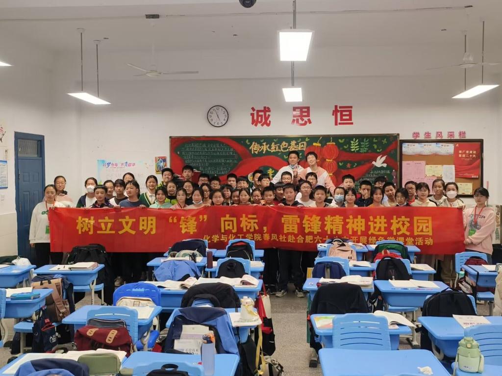 3月19日下午,化學(xué)與化工學(xué)院春風(fēng)社赴合肥六十八中開展“樹立文明‘鋒’向標(biāo),雷鋒精神進(jìn)校園”綠色微課堂活動(dòng)。