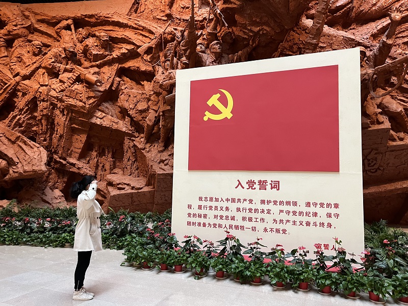 在紀(jì)念館一樓大廳,面對鮮紅的黨旗,應(yīng)用化學(xué)專業(yè)2019級本科生李寒雪舉起右拳,帶領(lǐng)支部黨員們重溫入黨誓詞。鏗鏘的誓言震撼著每一位黨員的心,提醒大學(xué)生黨員要時刻牢記使命與責(zé)任,為中華民族偉大復(fù)興貢獻青春和力量。