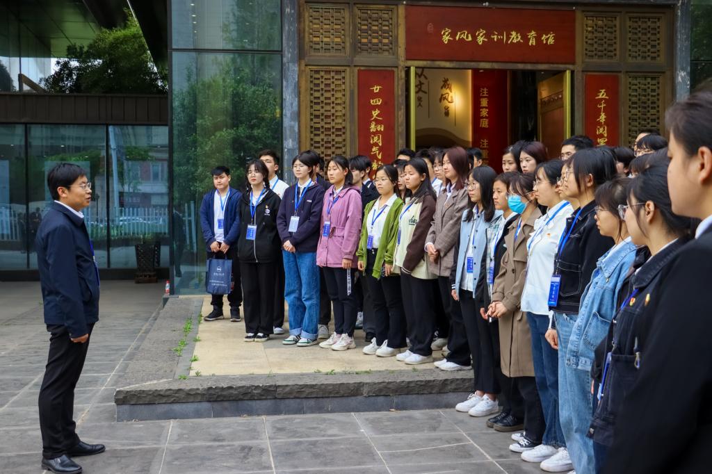 古雄社區(qū)場館負(fù)責(zé)人嚴(yán)飛向師生們介紹了基地建設(shè)的相關(guān)背景和基本情況,并指引大家分別參觀了家風(fēng)館、警示館、清風(fēng)廊等展區(qū)。在家風(fēng)家訓(xùn)館內(nèi),同學(xué)們共同學(xué)習(xí)了習(xí)近平總書記關(guān)于家風(fēng)家訓(xùn)的重要指示。在古代先賢、老一輩革命家、當(dāng)代文明家庭的家風(fēng)家訓(xùn)展區(qū)前,大家駐足凝思,深刻體會(huì)名人家風(fēng)家訓(xùn)的深遠(yuǎn)意蘊(yùn),領(lǐng)略充滿溫情和智慧的家風(fēng)故事。隨后,在展館外長約30米的清風(fēng)廊,近距離感受了從古至今的廉潔故事,感悟廉潔文化的博大精深。