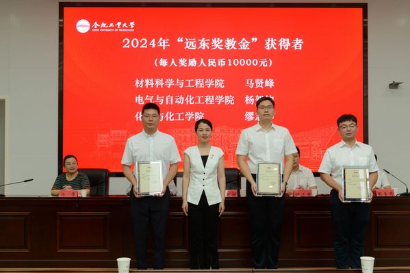 遠(yuǎn)東控股集團(tuán)人力資源服務(wù)中心總監(jiān)張妍妍在致辭中回顧了自2011年起,校企在人才共育、科研共創(chuàng)、平臺(tái)共建等領(lǐng)域的合作成果,介紹了未來更深層次的合作規(guī)劃。她表示合工大校訓(xùn)與遠(yuǎn)東企業(yè)使命高度契合,期待共探“新工科”育人模式,搭建產(chǎn)學(xué)研用一體化平臺(tái),攜手為制造業(yè)強(qiáng)國注入青春動(dòng)能。并為三位獲得遠(yuǎn)東獎(jiǎng)教金的老師頒發(fā)獲獎(jiǎng)證書。